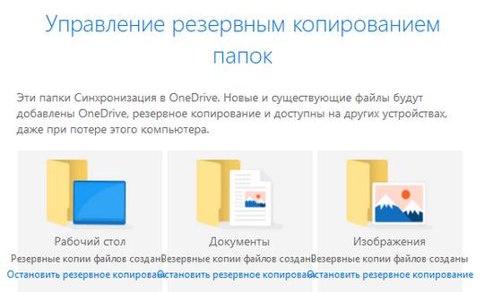 Если недостаток места в OneDrive вызван синхронизацией папок «Рабочий стол», «Документы» и «Изображения», то отключите их синхронизацию.