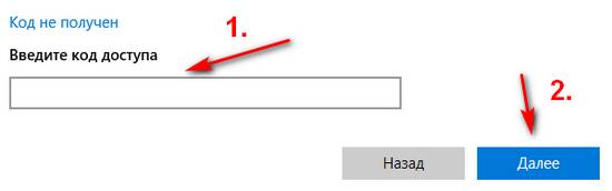 8. В появившемся поле введите код из SMS и нажмите «Далее».