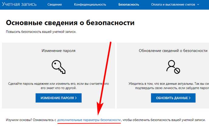 6. Нажмите неприметную ссылку внизу «Дополнительные параметры безопасности».
