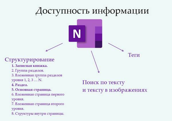 Можно, как угодно, группировать и структурировать свои заметки для удобного использования: OneNote – очень гибкая информационная среда в отличие от Word или бумажной записной книжки.