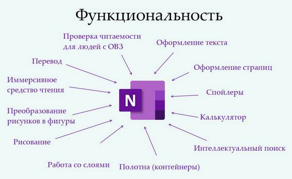 OneNote – это электронная записная книжка. Она хранит не только текст, а ещё фото, рисунки, ссылки, формулы, фигуры, файлы, аудиозаписи, теги и внедрённые объекты (например, видео YouTube).
