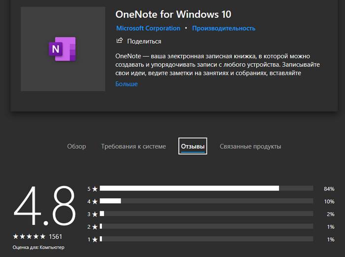 Записная книжка от Майкрософт высоко оценивается пользователями. По пятибалльной шкале: