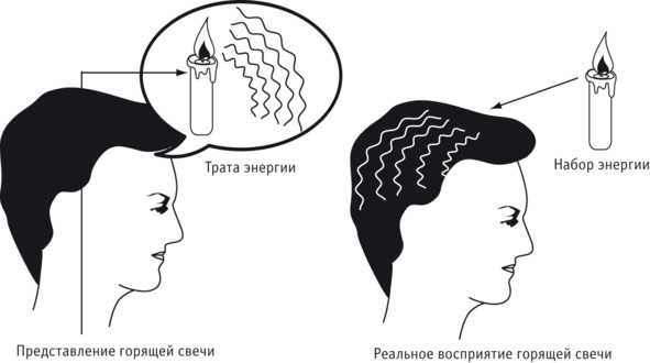 Такая разница в ощущениях говорит только об одном – в первом случае, представляя свечу горящей, мы тратили собственные силы на поддержание образа горящей свечи и в эфирном теле после таких затрат ничего не задерживается. Во втором случае мы накапливали исходящую от нее энергию, а после того как свеча погасла, заметили явное присутствие нецелевой активности восходящего потока в эфирном теле.