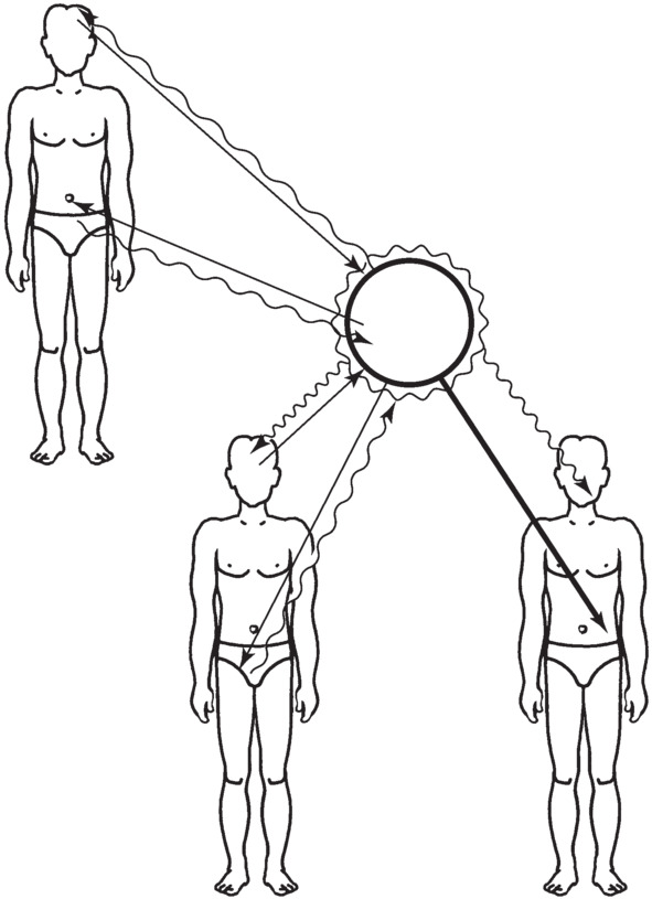 Рис. 5. Энергоинформационный паразит, отделившаяся идея, существует в коллективном поле человечества, удерживая тысячи и миллионы людей, получая от одних информацию, от других энергию и используя всех без исключения.
