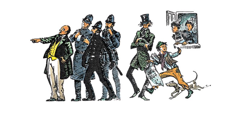 – Минутку, сэр! – сказал первый полицейский, извлекая большой блокнот и маленький карандаш. – Кто отвечает за эту особу? Вы?