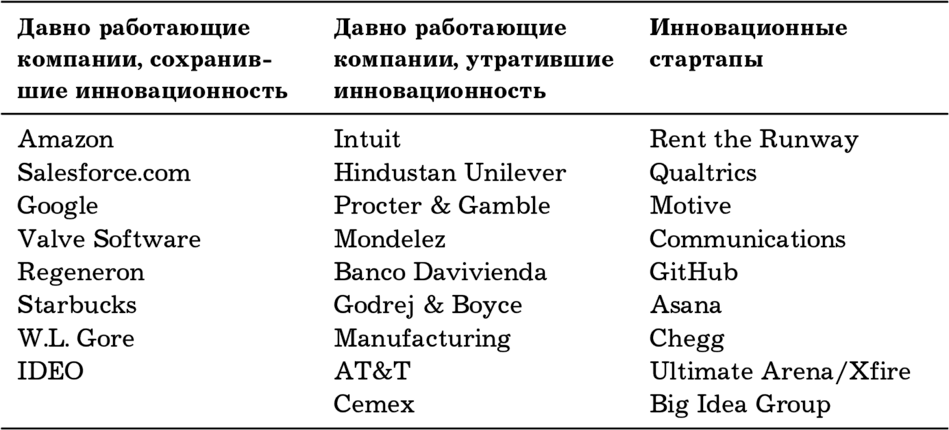Мы не даем описания всех компаний, однако в таблице 0-1 можно увидеть примеры тех, что попали в три первые категории. Именно они представляют большинство приведенных в книге изученных случаев.