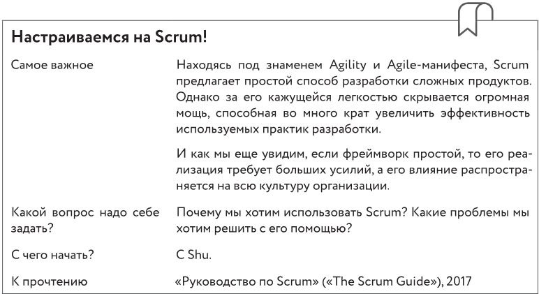 Мы поговорим об этом в главе «Контекстуализация Scrum».