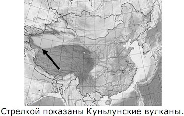 Вулканы Лунных гор (Куньлунь), расположенные рядом с пустыней Такла-Макан. Википедия: «Куньлуньские вулканы ― группа из семидесяти пирокластических конусов, протянувшихся вдоль горной системы Куньлунь. Ответственны за самое свежее вулканическое извержение в истории Китая, а также фактически являются самыми высокими вулканическим образованием Азии… Представляют собой группу конусов. Высота крупнейшего из конусов составляет 4808 метров от уровня моря».
