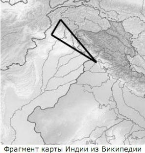 Интересно, что фраза Аристотеля, которая рассматривалась в разделе «Понт, Меотида»: «…В Азии с горы под названием Парнас стекает больше всего рек и самые крупные, а это, по общему мнению, самая высокая гора [в стороне] зимнего восхода. Если перевалить [эту гору], видно внешнее море, чьи пределы неведомы жителям нашей части земли. Так вот, с этой горы стекают среди прочих реки Бактр, Хоасп и Аракс, а как часть этой [последней] отделяется Танаис, [впадающий] в Меотийское озеро. И Инд – самая большая из рек – стекает оттуда. С Кавказа среди множества других рек, чрезвычайно многочисленных и полноводных, стекает также Фасис. Кавказ и по протяженности, и по высоте – самый большой горный хребет [в стороне] летнего восхода», ― если предположить, что речь идет о северо-западе Индии, позволяет определить, приблизительно с какого пункта описывал эту картину Аристотель. Фасис течет с северо-востока, а Инд с юга востока. Считаем, что Инд в верхнем течении это Акесин, о чем писал Арриан, а Фасис, получается, ― это нынешний Инд. Построим прямоугольный треугольник (потому что, угол между направлением на северо-восток и юго-восток равен 90°) на гипотенузе, которая совпадает с горным хребтом, с которого текут эти реки, направление первого катета на северо-восток, а второго на юго-запад, понятно, что картина довольно приблизительная, не учитывает все детали, тем не менее, она дает понятие, как решается эта задача.