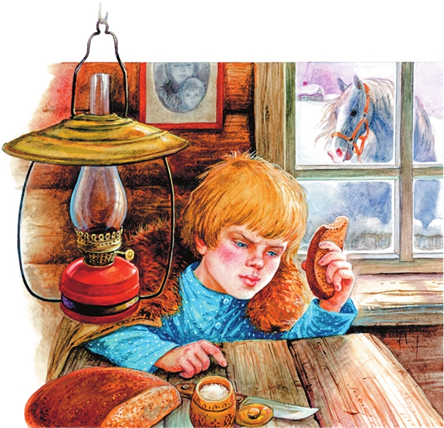 Филька, плача, рассказал Панкрату, как он обидел раненого коня и как из-за этого упал на деревню мороз.