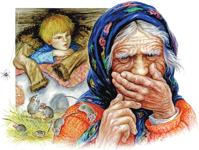 Бабка, плача, сказала Фильке, что наверняка уже замёрзли колодцы и теперь их ждёт неминучая смерть. Воды нет, мука у всех вышла, а мельница работать теперь не сможет, потому что река застыла до самого дна. Филька тоже заплакал от страха, когда мыши начали выбегать из подпола и хорониться под печкой в соломе, где ещё оставалось немного тепла. «Да ну вас! Проклятые!» – кричал он на мышей, но мыши всё лезли из подпола. Филька забрался на печь, укрылся тулупчиком, весь трясся и слушал причитания бабки.