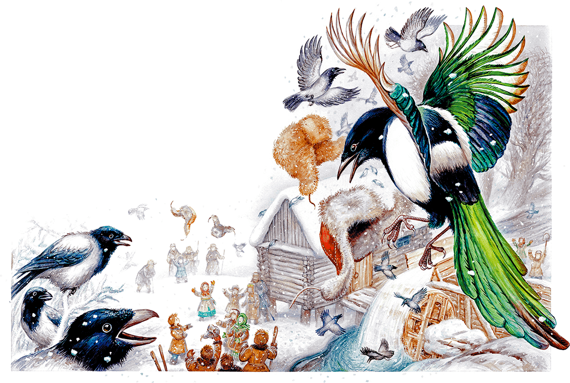 Не было только старой сороки. Она прилетела к вечеру, когда от теплоты лёд начал оседать, работа у мельницы пошла быстро, и показалась первая полынья с тёмной водой.