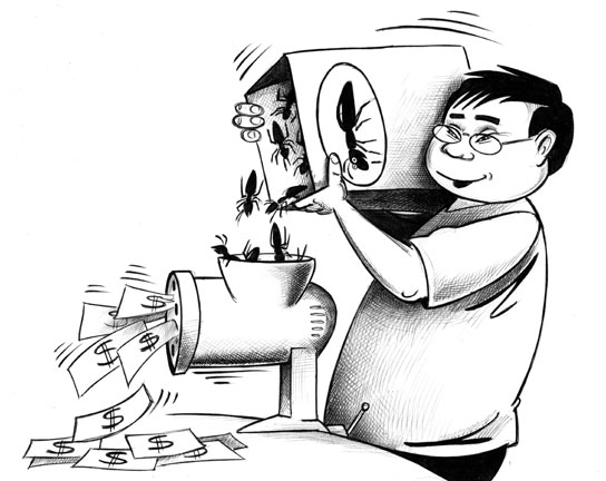 Довольно необычную финансовую пирамиду возвел китайский бизнесмен Ван Фэн. В 1999 году он открыл фирму Yilishen Tianxi Group of China и предлагал любому желающему стать инвестором всего за $1500. За эти деньги вкладчики получили коробку с особыми муравьями, которых нужно было кормить и выращивать по специальной инструкции в течение 90 дней. По истечении этого времени приезжали представители компании и забирали насекомых назад, перерабатывая их в афродизиаки или лекарство для лечения артрита. По крайней мере так заявляла компания бедным китайским фермерам.