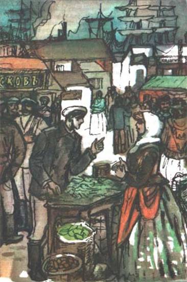 Прожженный молодой ярославец-кабатчик, увидев Исайку, вопросительно повел на него глазами. Исайка деликатно объяснил, что пришел за шинелью Ивана Рябого.