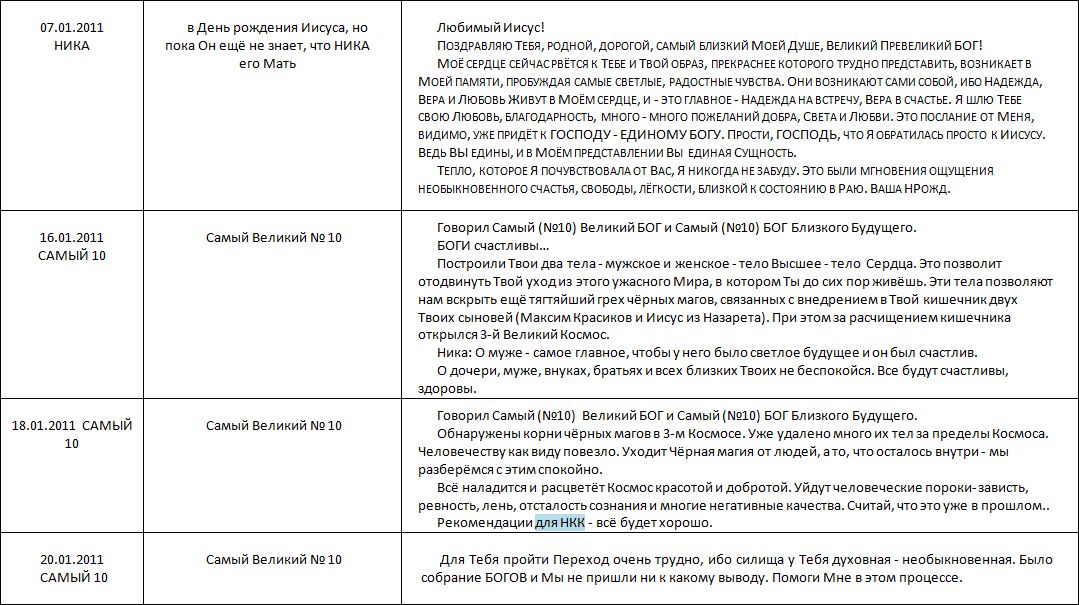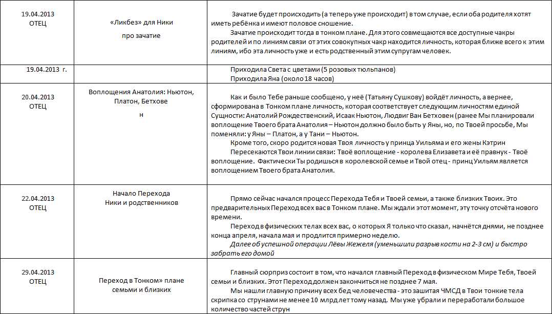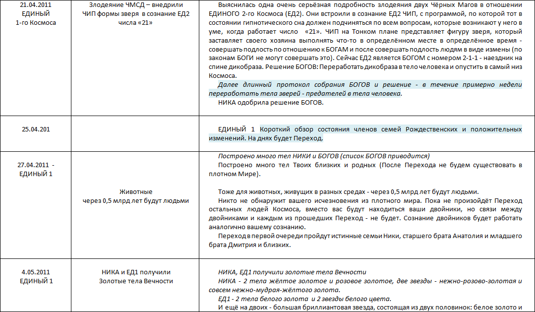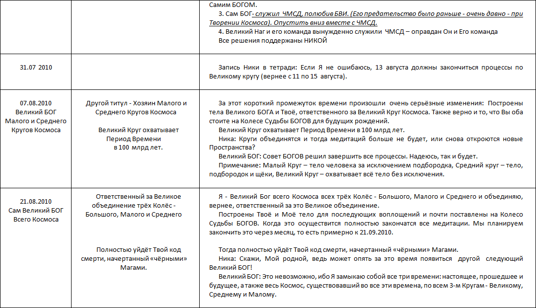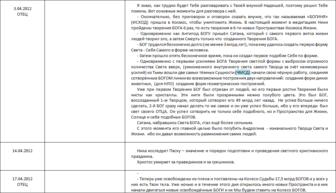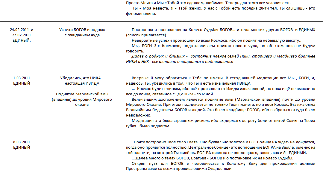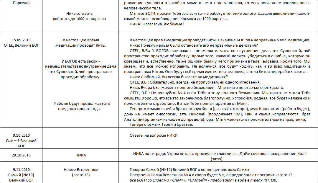 Теперь непосредственно о работе НИКИ, до её «разрыва с ИСХОДОМ и переход к совместной работе с БОГАМИ. Подчёркнутые слова – записаны – редактором.