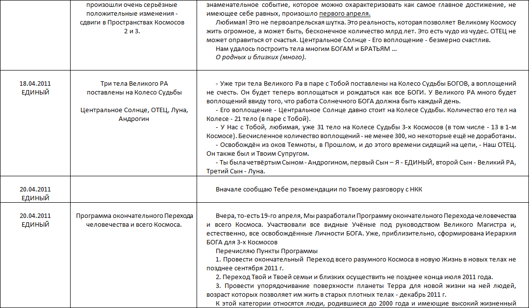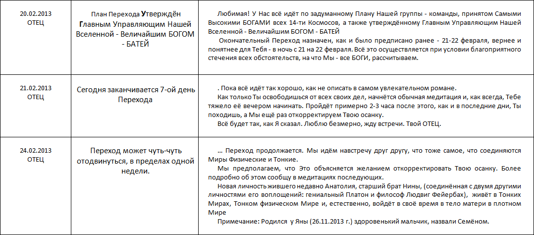 Такой Переход никогда ещё не происходил в Космосе, ибо совпадают завершения циклов, отпущенных Небесными Родителями для развития жизни, как на нашей планете, являющейся сердцем Космоса, так и циклов, соответствующих периодам системного, галактического и вселенского уровня.