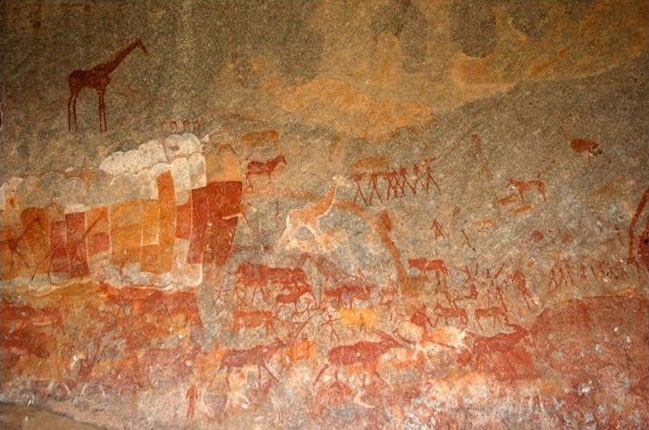 Первые поселения на землях современного Зимбабве датируются палеолитом. Археологическими находками данного периода являются главным образом каменные части орудий, реже изделия из кости. Более многочисленные находки мезолита и неолита – орудия труда, оружие, посуда[2]. Около 6000–5000 лет до н. э. населяющую эту территорию племена, вытеснили бушмены, оставившие после себя наскальную живопись, повествующую о нелегкой жизни охотников-собирателей. Некоторые из лучших рисунков находятся в пещерах Матопо Хиллс к юго-востоку от Булавайо, самые известные из них пещеры Бамбата, Нсватуги, Инанке и Силозване[3].