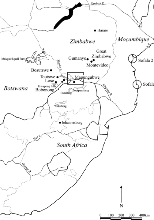 «Койсаны не были склонны к созданию политий (понятие, используемое для обозначения политической организации общества от общины до государства), городов и тем более каменных стен, и в этом сходны с банту. Поэтому истоки Мапунгубве остаются загадкой. Тем не менее очевидно, что это государство было основано на линии интенсивных контактов банту, только что пришедших на эти территории, и местного койсанского населения, которое, вероятно, представляло собой не бушменов, занимающихся охотой и собирательством, но готтентотов, практиковавших скотоводство»[10].