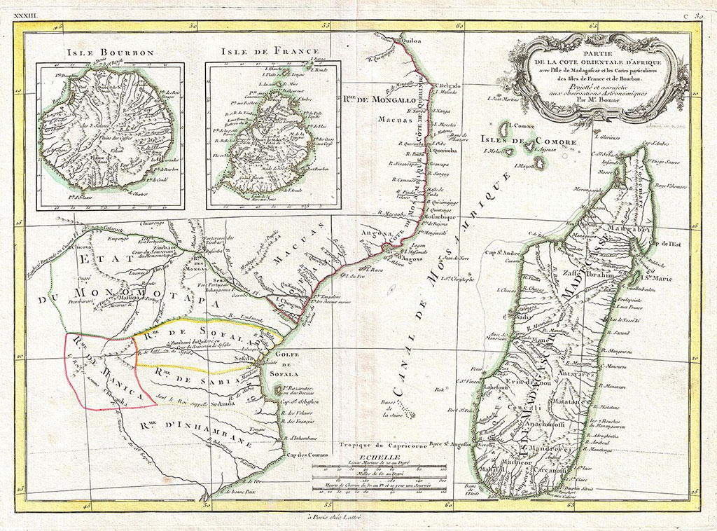 Около 1430 г. зимбабвийский принц Ньятсимба Мутота был послан на север от Большого Зимбабве[32], где на расстоянии 350 км от него основал – Звонгомбе, будущую столицу нового государства. До сих пор дискуссионным остается вопрос о потери значения Большого Зимбабве, часть исследователей считает, что причиной этого является обеднение источников ресурсов вокруг Большого Зимбабве (в том числе плодородной земли), другая часть склоняется к изменению торговых путей, проходящих через город в результате внутренних конфликтов. Также есть мнение, что миграция на север произошла из-за залежей каменной соли к северо-востоку от Шанвэ. Однако это версия не выдерживает критики, так как вызывает много вопросов: почему тогда была проигнорированы залежи в Гокве, или еще более богатые и обильные в долине Сэйв[33]. Тем не менее, факт в том, что его политическая и экономическая роль убывала, и в 1450 г. при сыне Мутоты – Матопе, вытеснив разрозненные северные племена Тавара/Тонга было образовано Королевство Мутапа (1450–1917) со столицей государства Звонгомбе. Позже португальцы дадут Королевству Мутапа название Мономотапа, что является транслитерацией африканского королевского титула «Мвене Мутапа»[34], который изначально был прозвищем Мутоты, данное ему после покорения местных племен Читако, означающее «хозяин разрушенной земли»[35]. С подачи португальцев, а вернее благодаря путешествию Васко да Гамы, Мономотапа обрела славу таинственной золотой страны Офир, из которой сам царь Соломон получал золото[36]. Эта слава привлекала в эти земли жаждущих разбогатеть европейцев не одно столетие.
