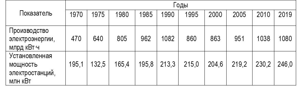 Основные показатели работы электроэнергетики представлены в табл. 3.