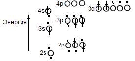 Как видно их схемы, энергия 3d-орбиталей ниже, чем 4p-орбиталей. В соответствии с правилом Хунда суммарное спиновое число должно быть максимальным, то есть при заполнении одним электроном одной орбитали, а затем заполнение вторым электроном орбиталей, имеющий один электрон. На основании этого правила в атоме железа 3d-орбитали имеют по 1 электрону.