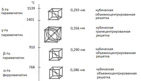 В существующей литературе по физике металлов приводятся только структурные формулы железоуглеродистых сплавов и оксидов железа, а также подробно описаны физические взаимодействия перегруппировки атомов железа при перестройке кристаллической решетки.