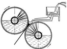 Металл из расплава подается на валки с образованием клиновидной ванны расплава (расплав перегрет на несколько градусов). Затем расплав замораживается на их поверхностях упруго прижатых валков и происходит кристаллизация металла. Условия кристаллизации должны обеспечить заданную прочность листа на выходе и соответствие физико-химическим параметрам. Затвердевшие слои металла на двух валках вступают во взаимное соприкосновение и свариваются давлением в один сплошной лист. Здесь необходимо получать лист высокой сплошности [11]. Толщина листа определяется зазором между валками, который в свою очередь зависит от скорости вращения валков и времени контакта расплава (жидкого металла) с валками.