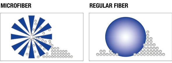 Микрофибра сделана из сверхсовременных нитей, в которых волокна полиэстера соединены с ядром из полиамида. Ткань имеет миллионы мелких пор по форме напоминающих микроскопические треугольники, которые образованы в результате расщепления. Эти микроскопические треугольники втягивают все виды частиц пыли внутрь волокна с помощью контактной электризации и предотвращают их выпадение. Ткань из микрофибры представляет собой “ множество своеобразных микроскопических пылесосов”.