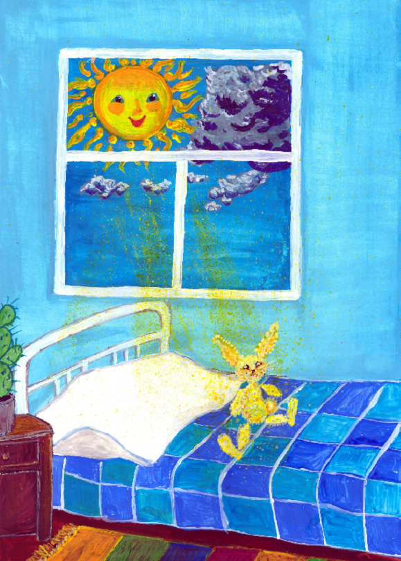 Когда же мальчик под утро приходил в свою комнату, пушистого лунного гостя там уже не было – на детской кроватке скакал Солнечный Зайчик.