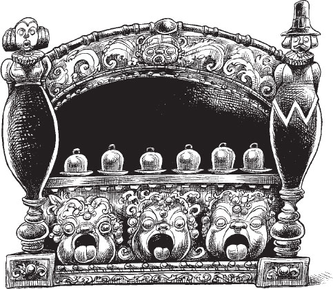 Здесь были паштет из зайца, мышиная запеканка в горшочке, голубь, приготовленный на восемь разных ладов, и заливное из болотной курицы. Все – на серебряных блюдах под блестящими серебряными крышками.