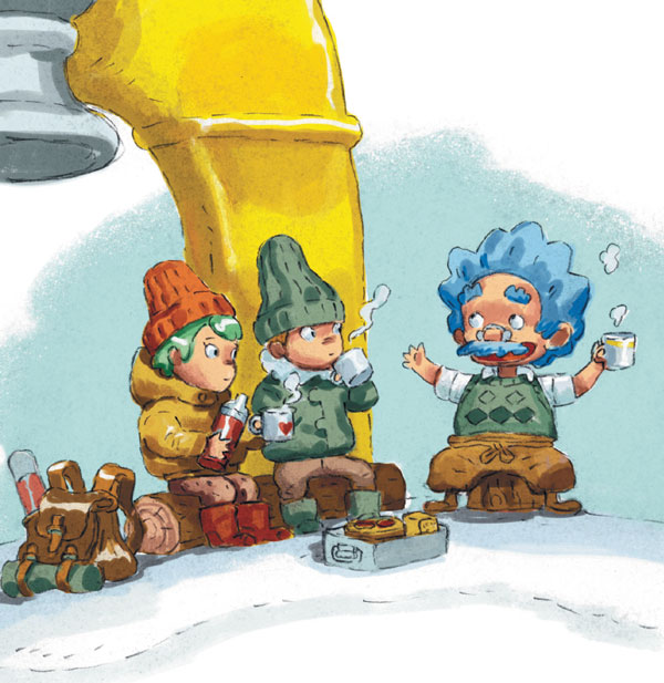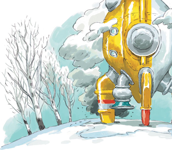 Марианна, конечно, рассчитывала совсем на другое, но не отступать же теперь. И вот в ракету погрузились лыжи, рюкзаки, пёс, мышонок, дети и забавный господин с растрёпанными волосами и пышными усами (на которых застыли шоколадные капельки). Две минуты спустя раздался ещё более оглушительный грохот, чем прежде. Два перепуганных зайца запрыгнули в свою нору, а Лунник уже быстро удалялся, исчезая в синем небе и дальше, в космосе.
