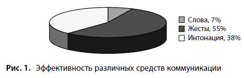 Перенасыщенный информацией постиндустриальный мир диктует новые требования к продавцу, которые выходят далеко за рамки привычной схемы. Конечно, по-прежнему важно грамотно открыть и закрыть продажи, аргументировать предложение. И по-прежнему большое значение имеет не только то, что мы делаем, но и то, как мы это делаем. Как привлечь внимание клиента и показать ему выгоду, которую он получит от его приобретения, как говорить. В широко известных исследованиях Альберта Меграбяна, проведенных во времена бурного развития технологий в продажах, доказывается: 55 % воздействия производится языком жестов, 38 % – интонациями и лишь 7 % – словами (рис. 1). Согласимся с этим и будем профессионально использовать улыбки, жесты, позу, голос.