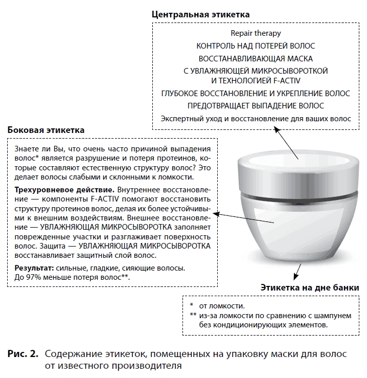 Рассмотрим пример. На рис. 2 схематически изображена этикетка, помещенная на упаковку маски для волос от одного известного мирового бренда (названия товара и используемых технологий изменены).