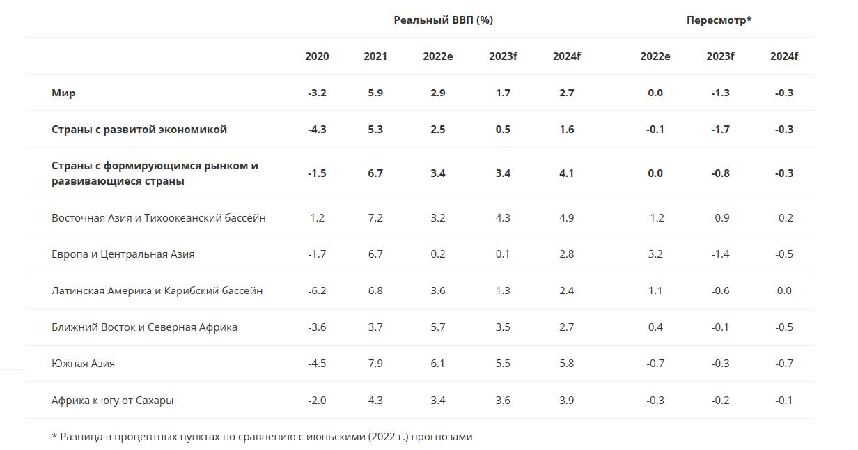 Таблица 2.4. Прогнозируемые темпы роста мировой экономики от Всемирного банка