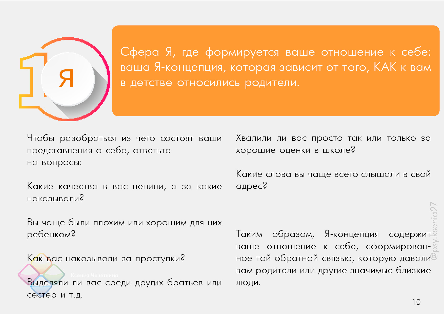 Чтобы разобраться из чего состоят ваши представления о себе, ответьте на вопросы: