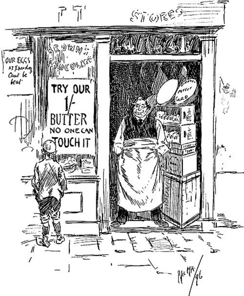 Бакалейная лавка. Иллюстрация из журнала «Панч»