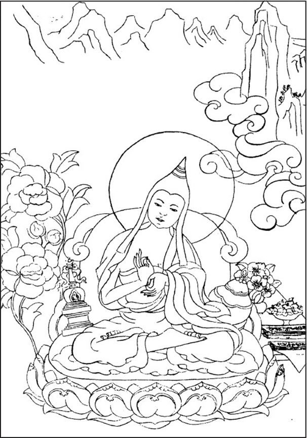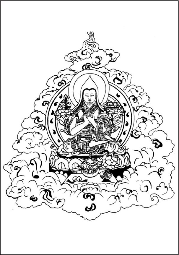Гуру ЦонкапаУчения перешли от великих индийских пандитов к несравненному Гуру Цонкапе (около 1380 г. н. э.) по линии преемственности примерно двадцати знаменитых йогинов, знатоков метитации, в традиции Кадампа. Гуру Цонкапа, в свою очередь, передал эти учения семнадцати или восемнадцати своим ученикам.