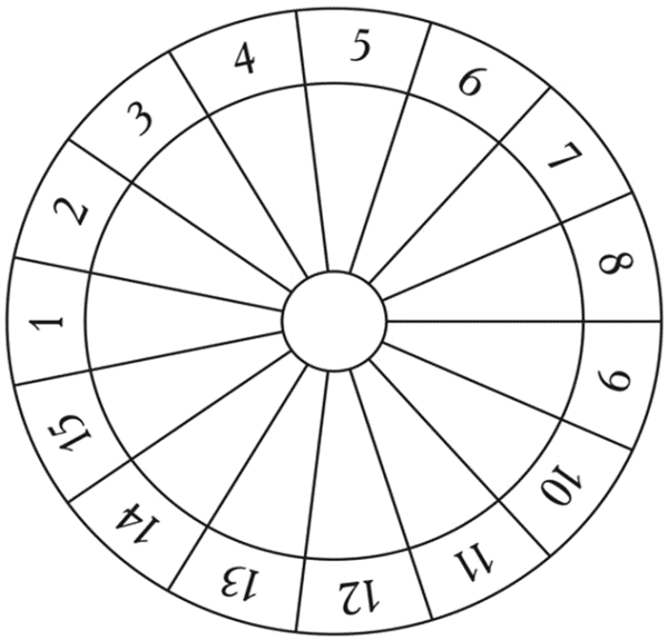 Выбрать один из 60-ти вопросов. Затем, взяв пшеничное зерно, бросить его в центр гадательного круга с высоты 20–30 см. Число, на которое упадет зерно, надо сложить с номером, на котором стоит загаданный вопрос. В таблице «Имена прорицателей» в левой колонке найти цифру полученной суммы. В том же ряду в правой колонке окажется номер параграфа, в котором вы найдете ответ. Номер ответа совпадает с числом, на которое выпало зерно.