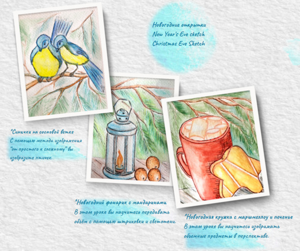 Красивые новогодние открытки можно создать с помощью скетчинга.