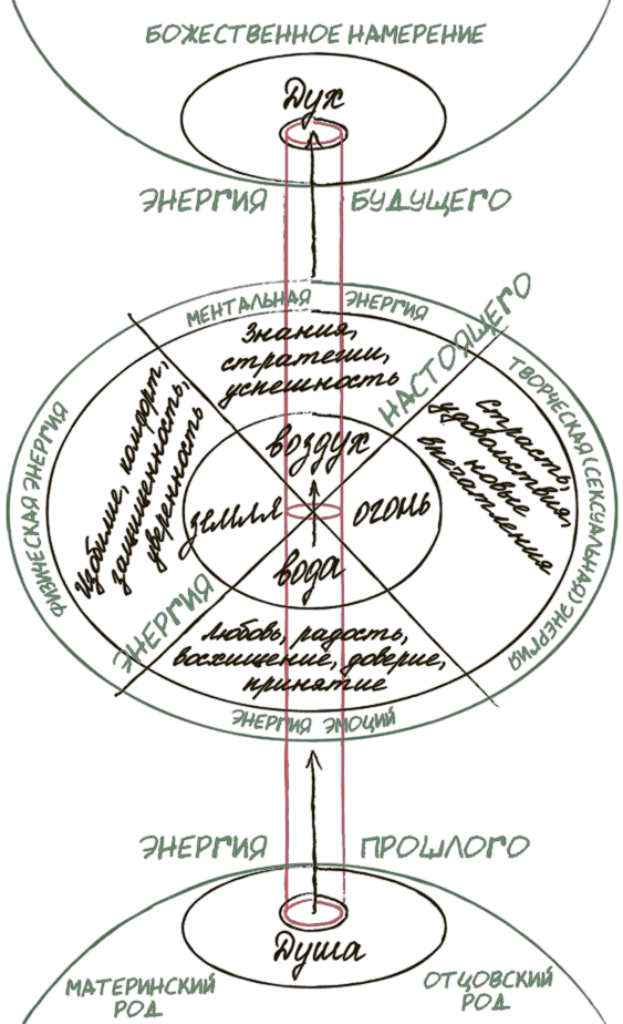 2.2. Энергия мира – проявления силы стихий в нашей повседневной жизни. Например, стихия воздуха связана с ментальной областью, с учебой и усвоением информации, с успешными стратегиями – с тем массивом знаний и опыта, который накоплен человечеством. Стихия воды связана с эмоциональной жизнью. Это положительные эмоции, все, что наполняет нас радостью и любовью к жизни, наши отношения и общение с людьми. Стихия земли связана с нашим телом – с физической активностью, с питанием, с уровнем комфорта, с тем, где мы живем и как мы за собой ухаживаем, с материальными ресурсами в нашей жизни. И наконец, стихия огня – это впечатления, удовольствия, новизна, творчество, новые идеи.