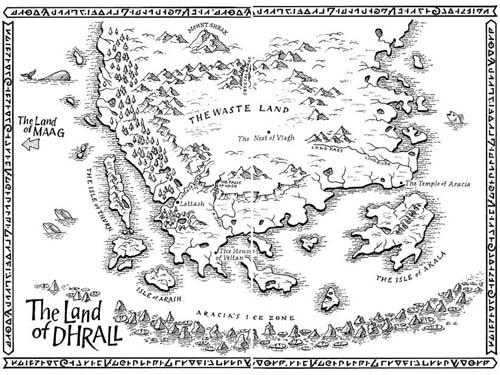 The Land of Dhrall, if we are to believe the sometimes fanciful legends of the region, has existed in its present location since the beginning of time. Father Earth is unstable, and other continents move hither and yon across the face of Mother Sea, wandering, ever wandering, in search of new places in which to abide. But the Land of Dhrall, we are told, was firmly anchored to its present location by the will of the gods of Dhrall, and it shall remain ever so until the end of the world.