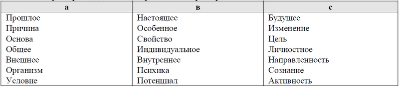 Таким образом, на основании приведенных выше примеров можно выделить три основных универсальных системных фактора: а, в, с, со специфическими характеристиками:
