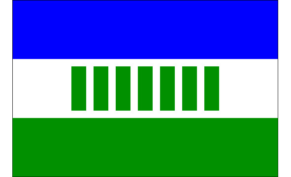 По некоторым источникам, государственный флаг был учрежден в 1923 г. Его полотнище вписывается в прямоугольник с соотношением длины к ширине как 4: 3 и состоит из красных, с синей каймой, треугольных частей.