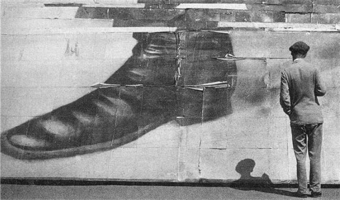 Ильф у плаката со Сталиным. Москва, 1934. Фото А. Козачинского