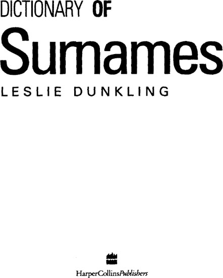 Leslie Dunkling Collins Dictionary Of Surnames: From Abbey to Mutton, Nabbs to Zouch