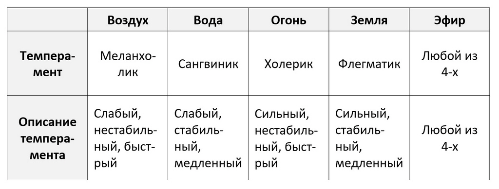 Чтобы лучше понять стихии, давай вспомним теорию о темпераментах.