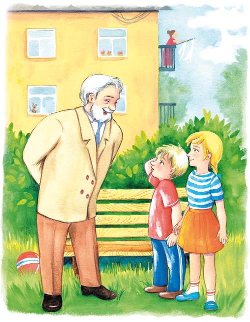 Пока он разбирался, дедушка не имел возможности гулять каждый день. Вот об этом они с Лёлишной и разговаривали, когда к ним подошёл высокий дяденька, в голубом пиджаке, с огромным чемоданом, и спросил: