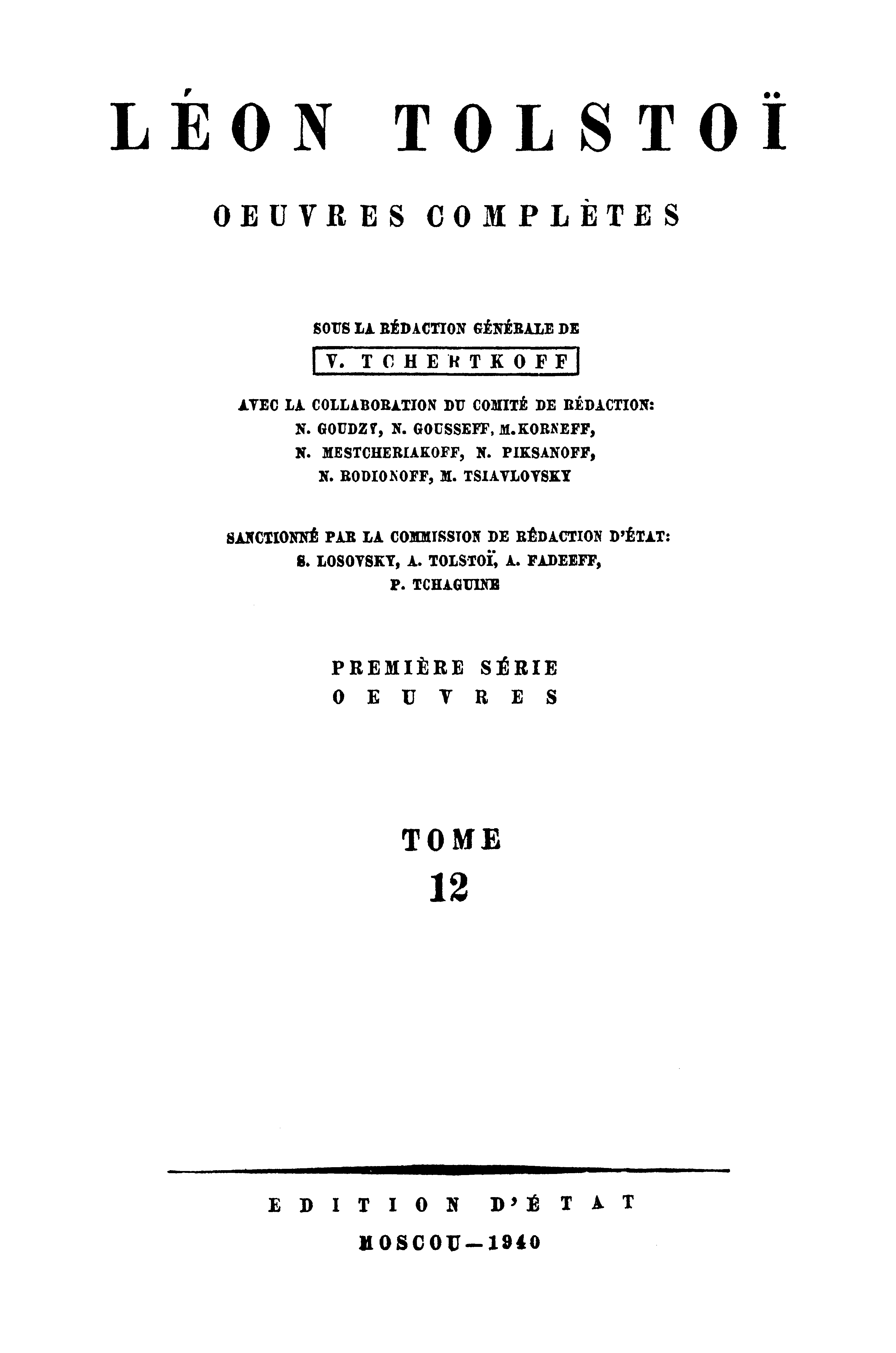 Подготовлено на основе электронной копии 12-го тома Полного собрания сочинений Л.Н. Толстого, предоставленной Российской государственной библиотекой