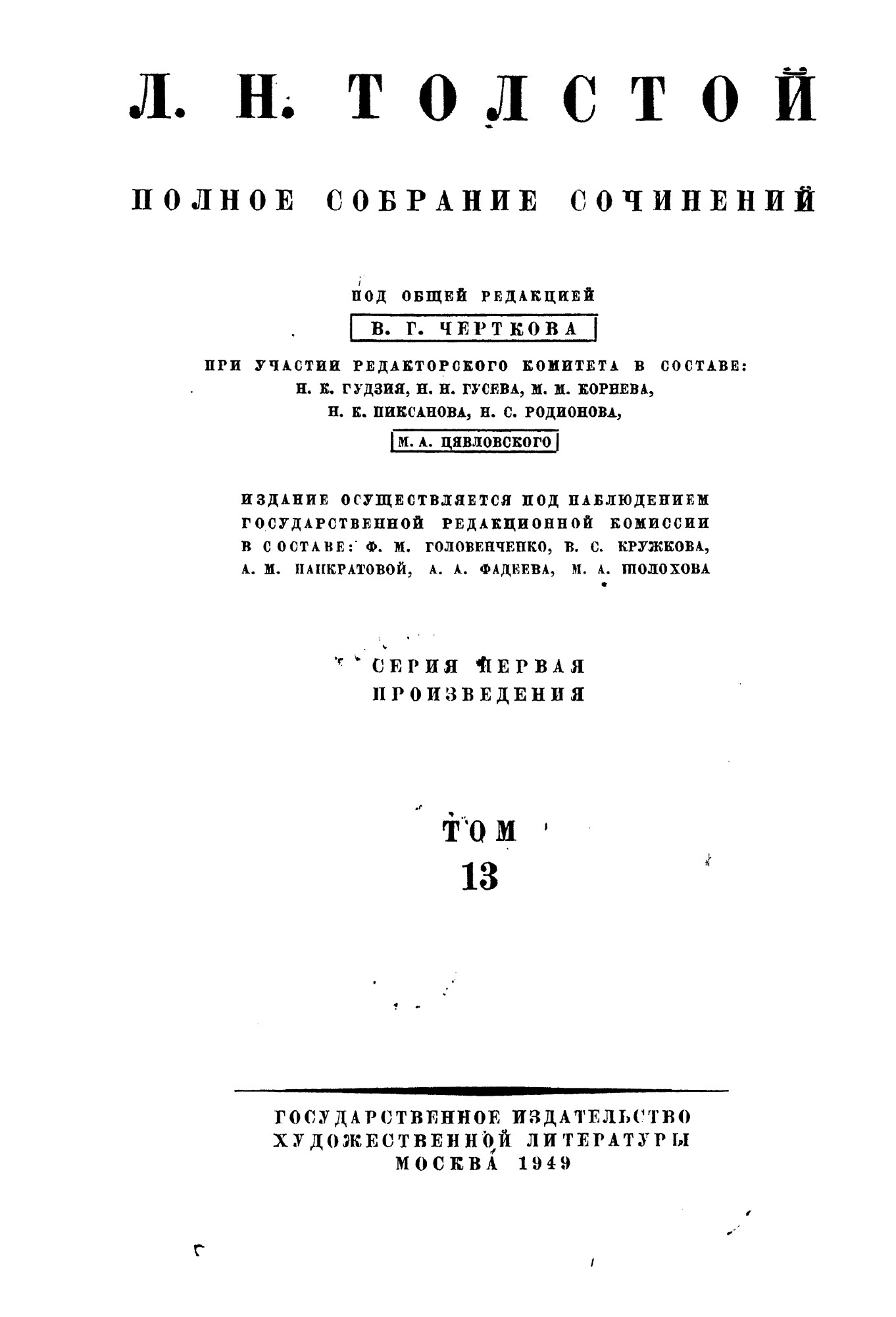 Подготовлено на основе электронной копии 13-го тома Полного собрания сочинений Л.Н. Толстого, предоставленной Российской государственной библиотекой