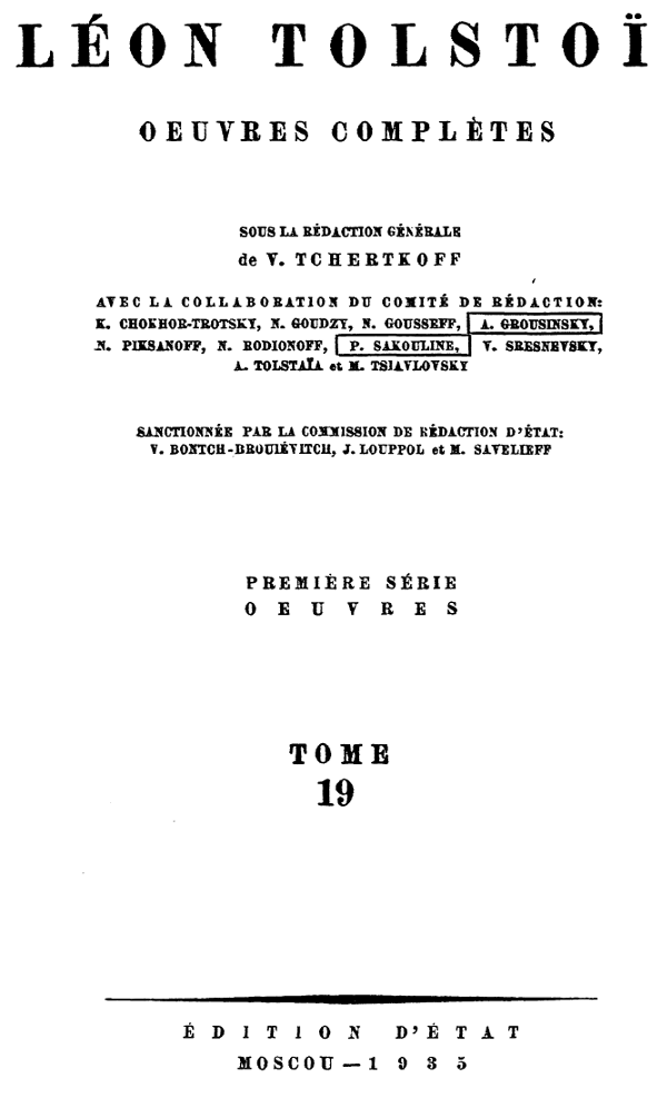 Подготовлено на основе электронной копии 19-го тома Полного собрания сочинений Л.Н. Толстого, предоставленной Российской государственной библиотекой